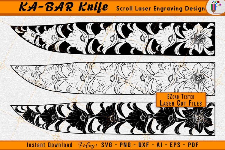 Dxf Eps Cnc Pattern Ezcad Tested Engraving File Instant Download Engraving File Wood Metal Acrylic Scroll Design Kabar Knife Engraving Scrollwork Knife Design Knife Customization Scroll Design Decorative Knife Engraving Digital File Knife Laser Engraving Svg Scroll Svg For Kabar Knives
