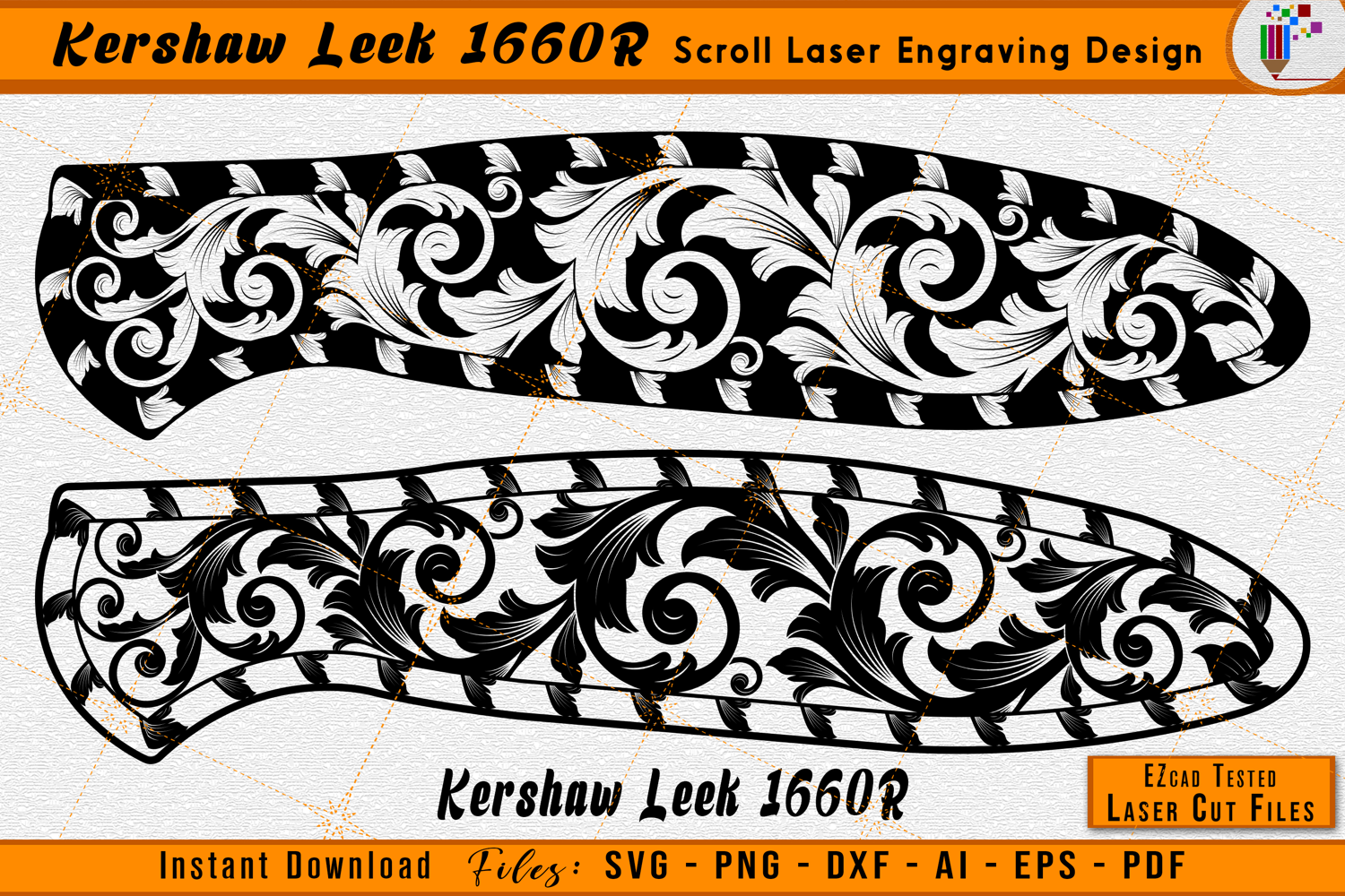 Dxf Eps Cnc Pattern Ezcad Tested Engraving File Instant Download Engraving File Wood Metal Acrylic Scroll Design Scrollwork Knife Design Knife Customization Scroll Design Decorative Knife Engraving Digital File Knife Laser Engraving Svg Kershaw Leek 1660r Engraving Scroll Svg For Kershaw Knives