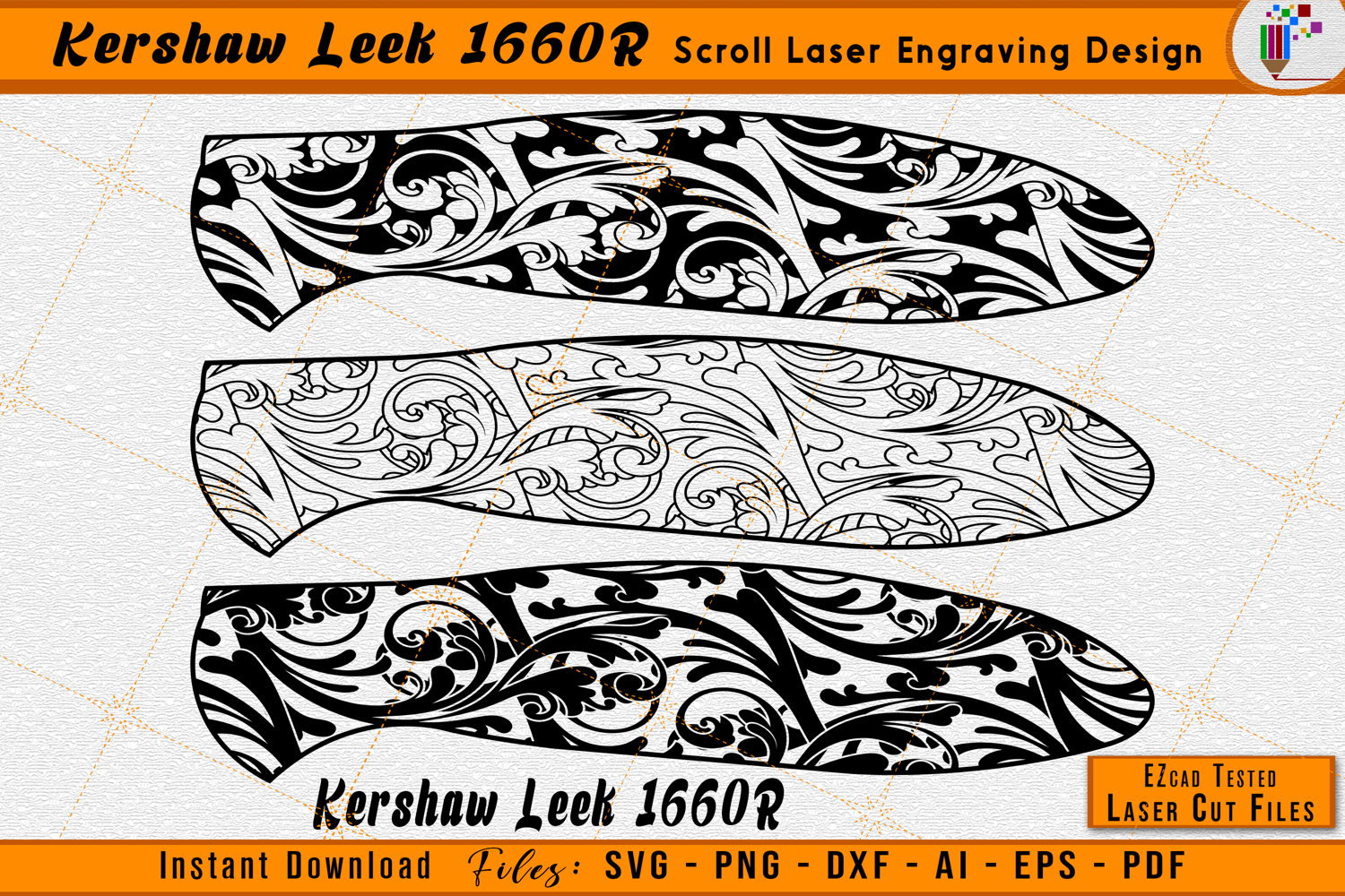 Dxf Eps Cnc Pattern Ezcad Tested Engraving File Instant Download Engraving File Wood Metal Acrylic Scroll Design Scrollwork Knife Design Knife Customization Scroll Design Decorative Knife Engraving Digital File Knife Laser Engraving Svg Kershaw Leek 1660r Engraving Scroll Svg For Kershaw Knives