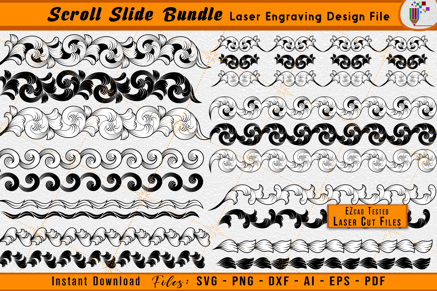 Achieve a refined, professional engraved finish with this Scrollwork Slide Bundle Laser Engraving Design File. Each scroll pattern in the bundle is designed to enhance slide surfaces with clean ornamental flow, creating a balanced and visually striking engraved result once completed.