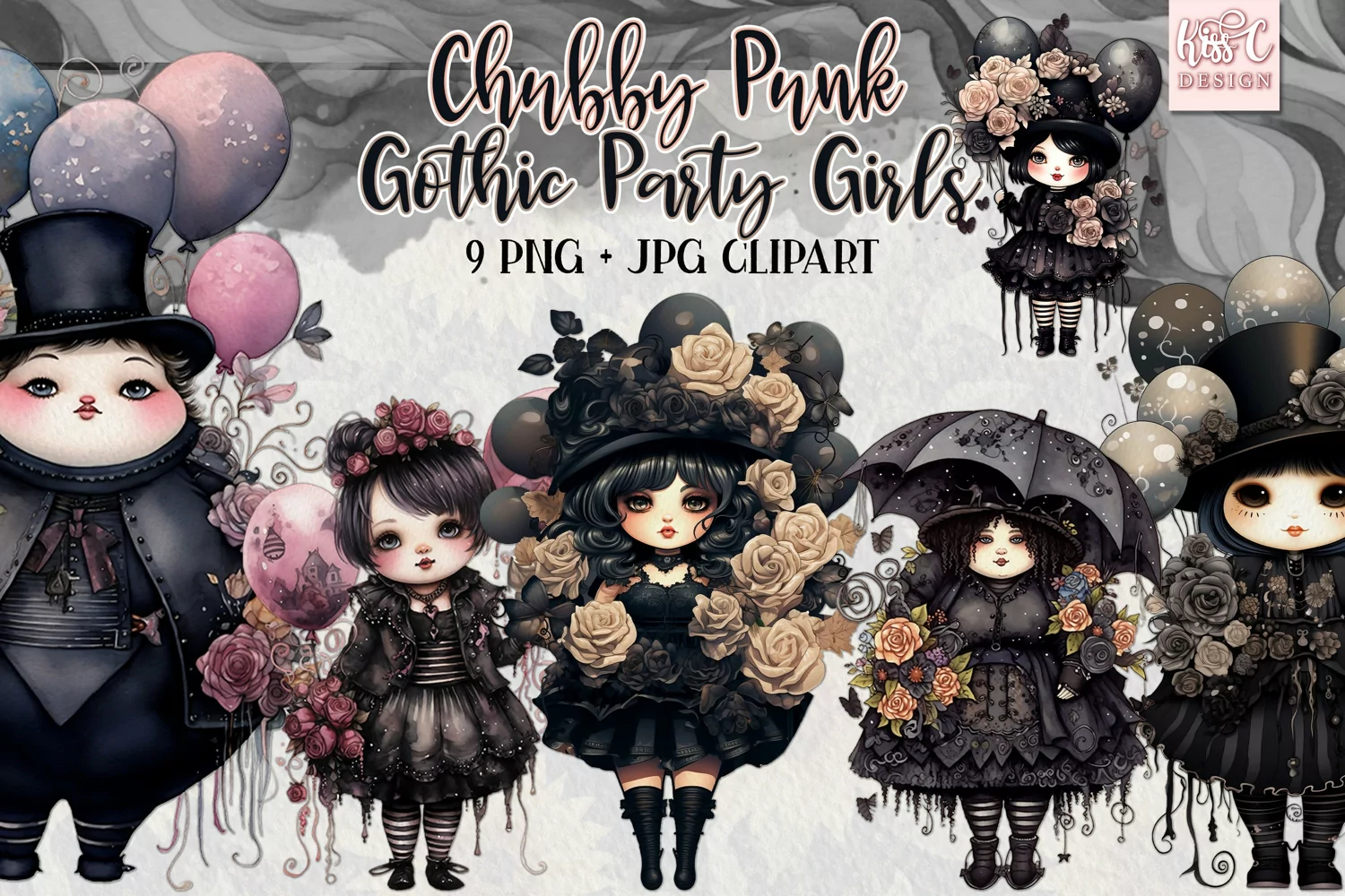 Chubby Punk Gothic Party Girls Sublimation Cliparts example image 1