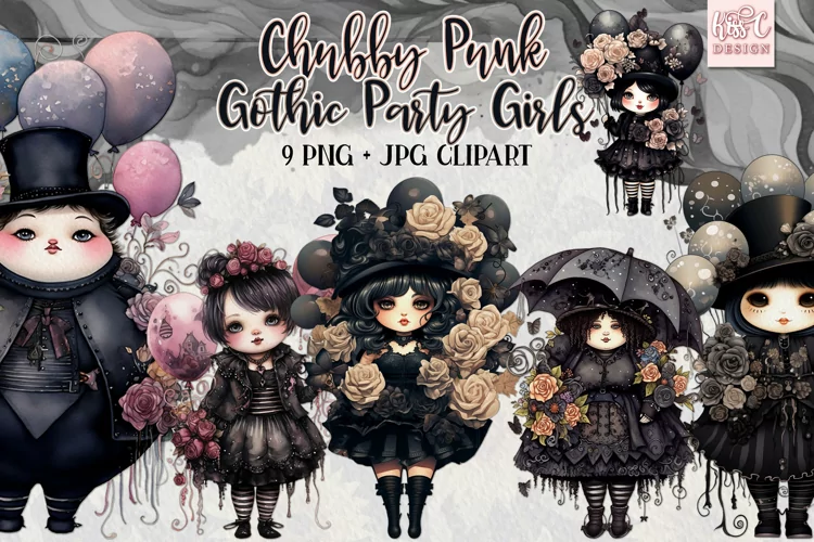 Similar Design Products to Chubby Punk Gothic Party Girls Sublimation Cliparts