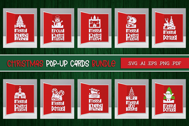 Bundle of 10 Christmas pop-up cards SVG paper cut design.