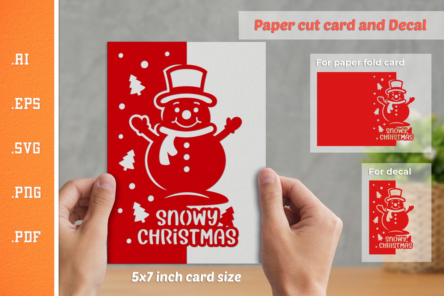 It's a 5x7 inch folded Christmas paper cut card design. Available in 2 design versions, the other one is for decal use.