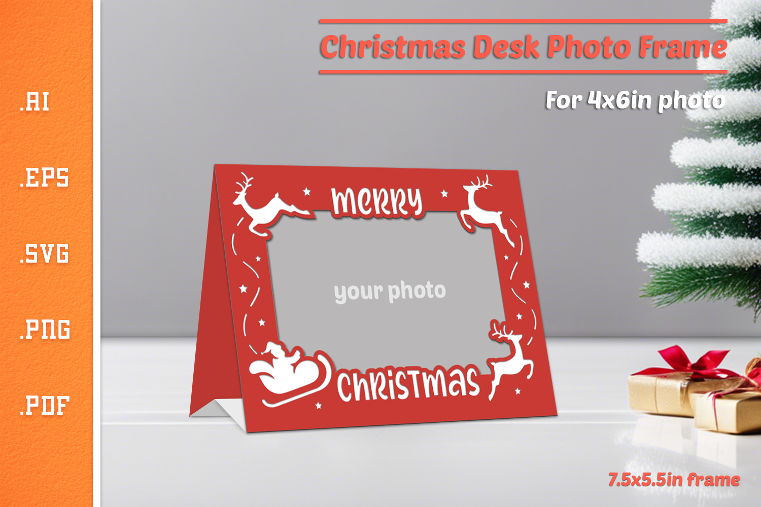A Christmas desk paper cut photo frame, designed for 4x6 inch size photo.
