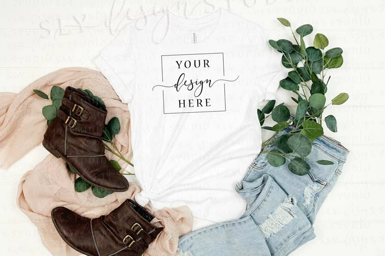 Plain white Bella Canvas 3001 tshirt Mockup rustic farmhouse