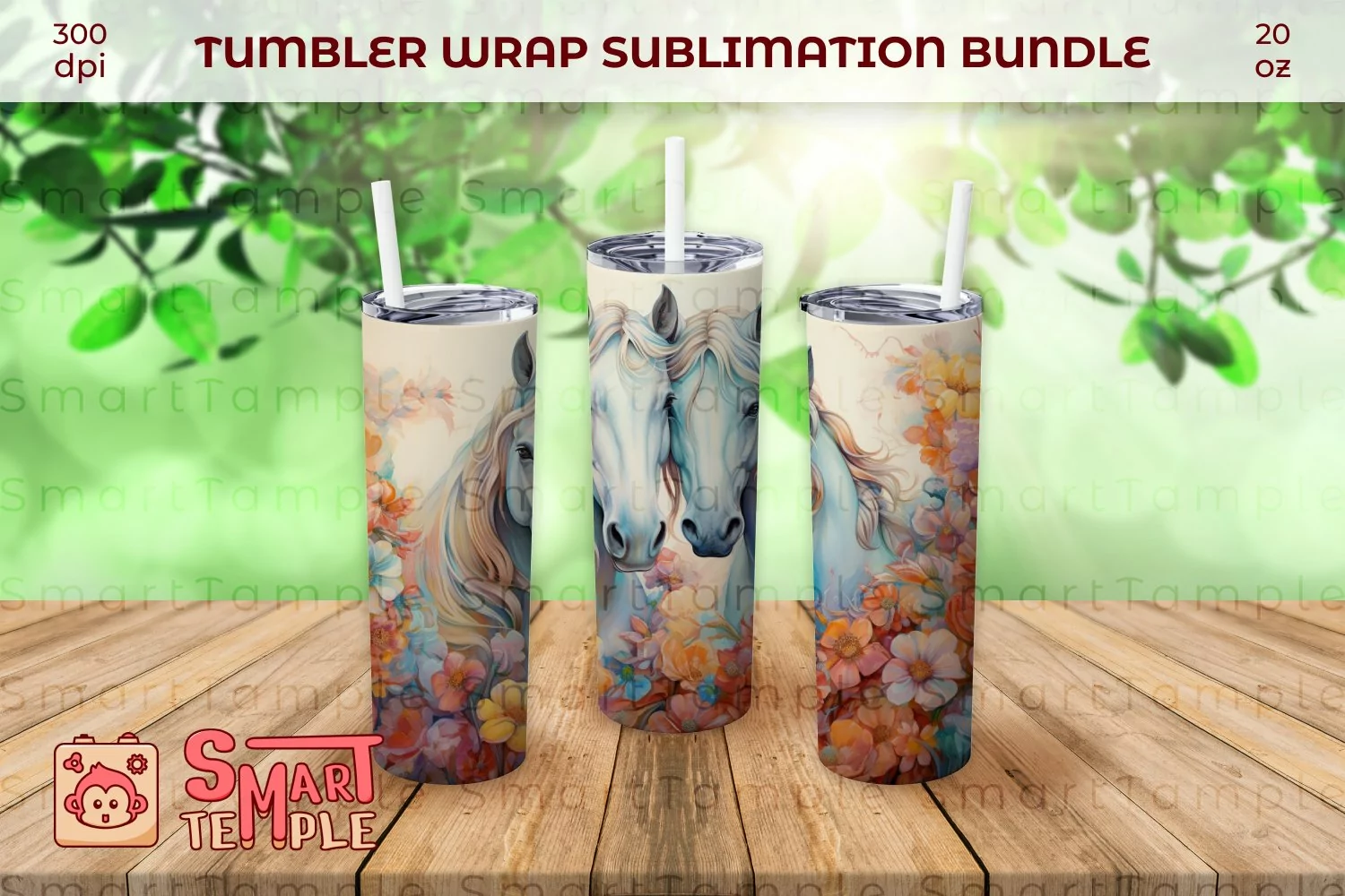 Horses themed drinkware, Horses tumbler wrap, Horses wrap example image 1