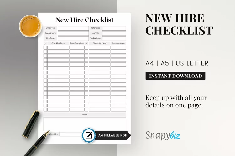 Fillable New Hire Checklist Printable Planner| New Hire Checklist| New Employee| New Hire Paperwork| Checklist Employee.