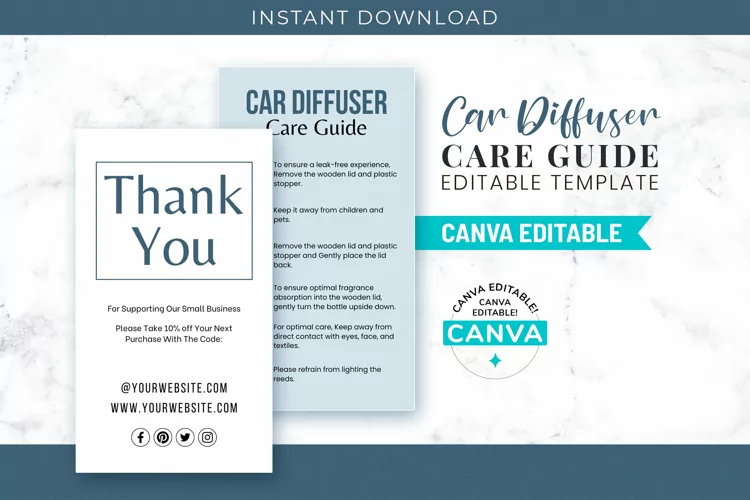 You will receive Canva Editable Car Diffuser Care Guide Template.