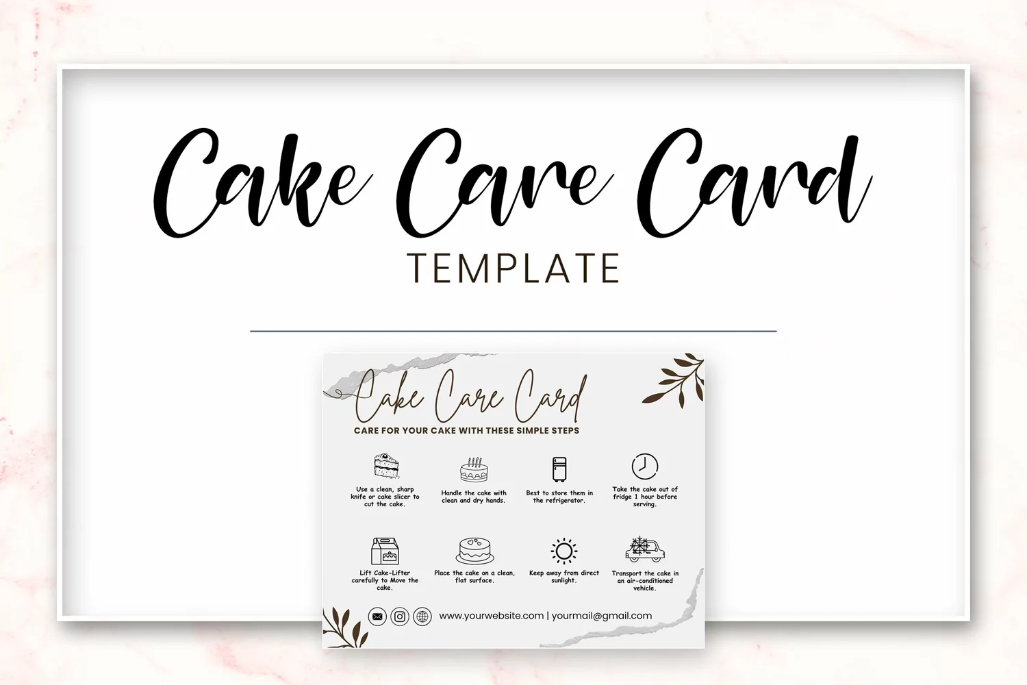 • You will receive a Canva Editable Cake Care Card Template.