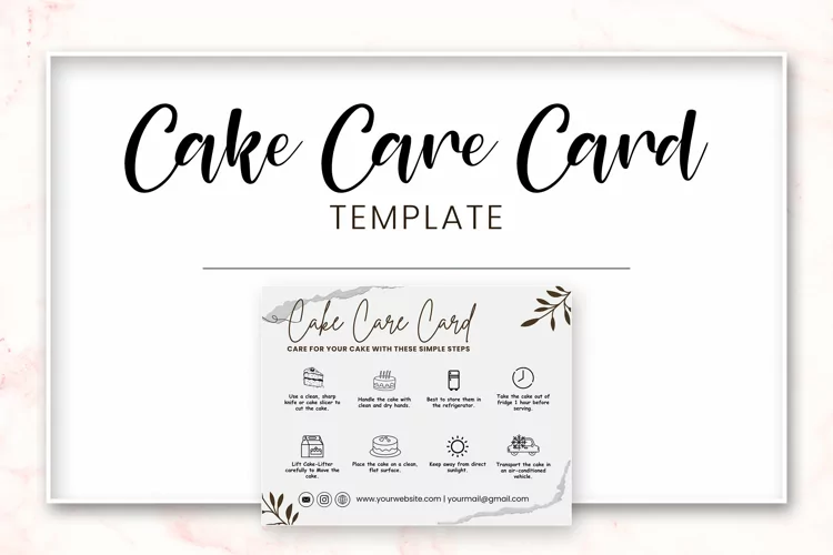 The Cake Care Card Template includes an Instruction Template and Cake Care Guide Design that is easily editable and offers instant access via an Instant Download.