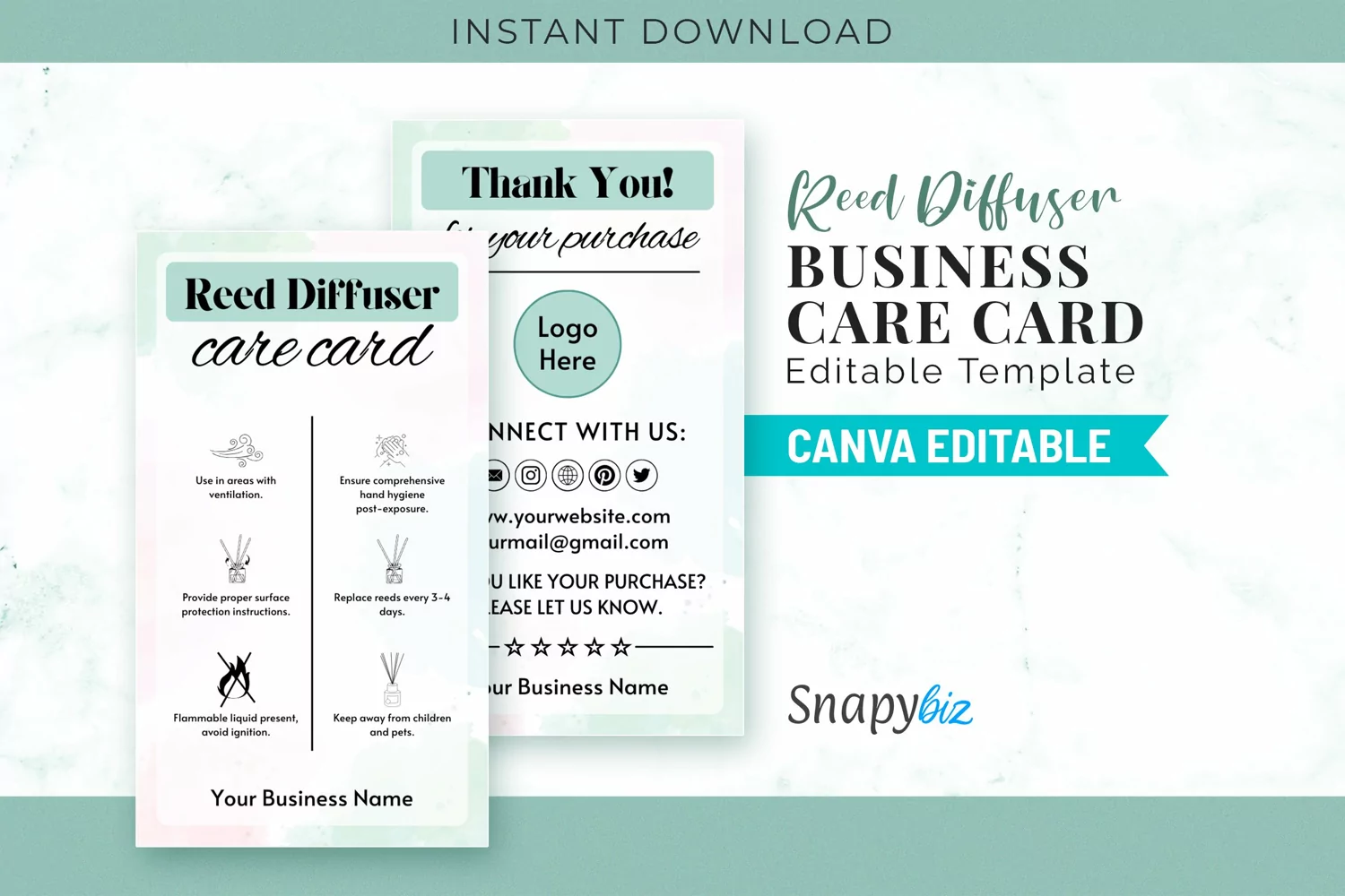 You will receive the Reed Diffuser Business Care Card Editable Template CC-55, 2x3.5 inches.