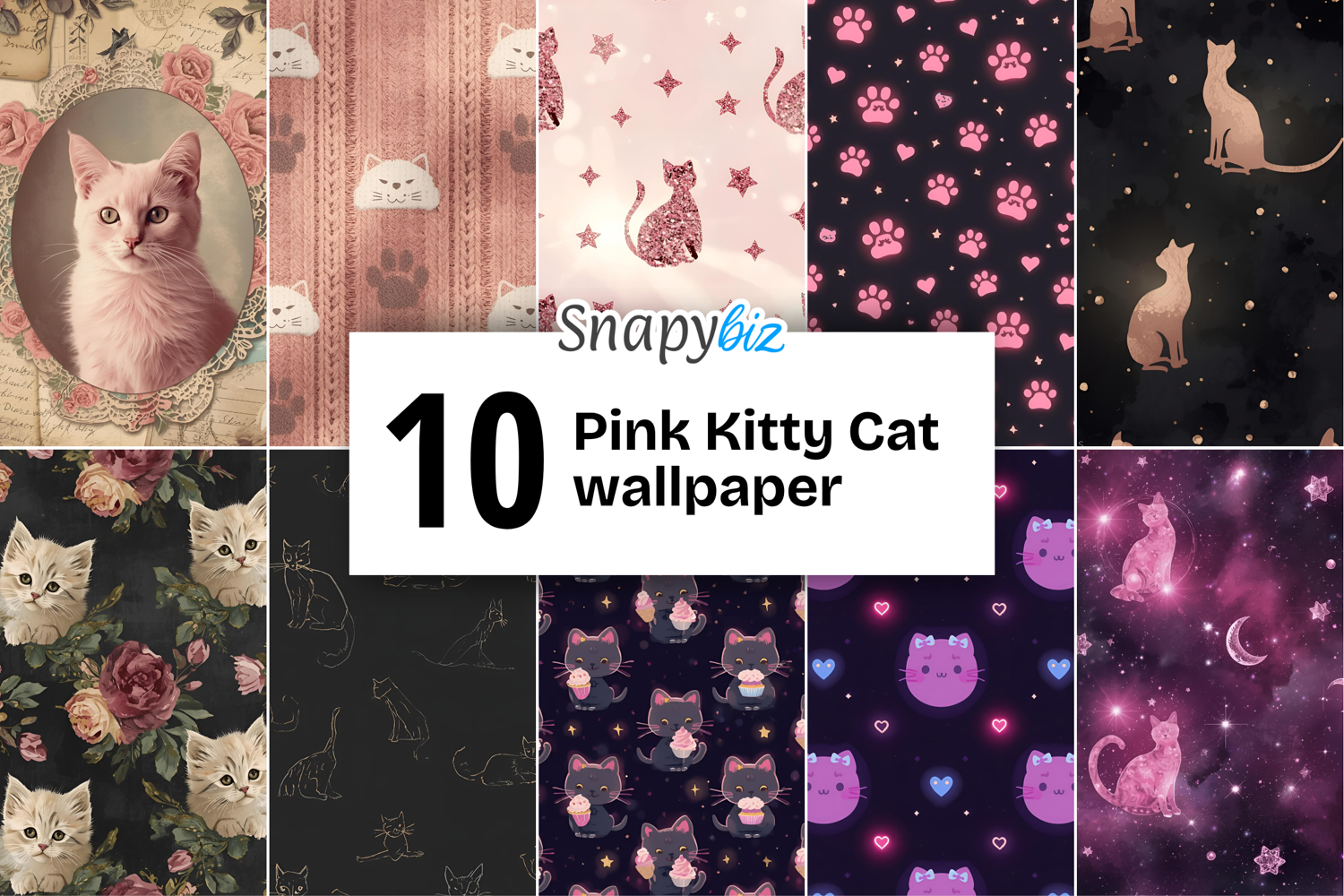 Perfect for everyday use or gifting, this bundle is the ultimate treat for anyone who loves cute cat wallpaper and pink-themed digital art.