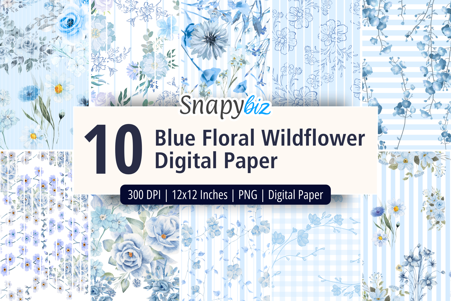 - 10 high-quality Blue Seamless Wildflower Digital Paper