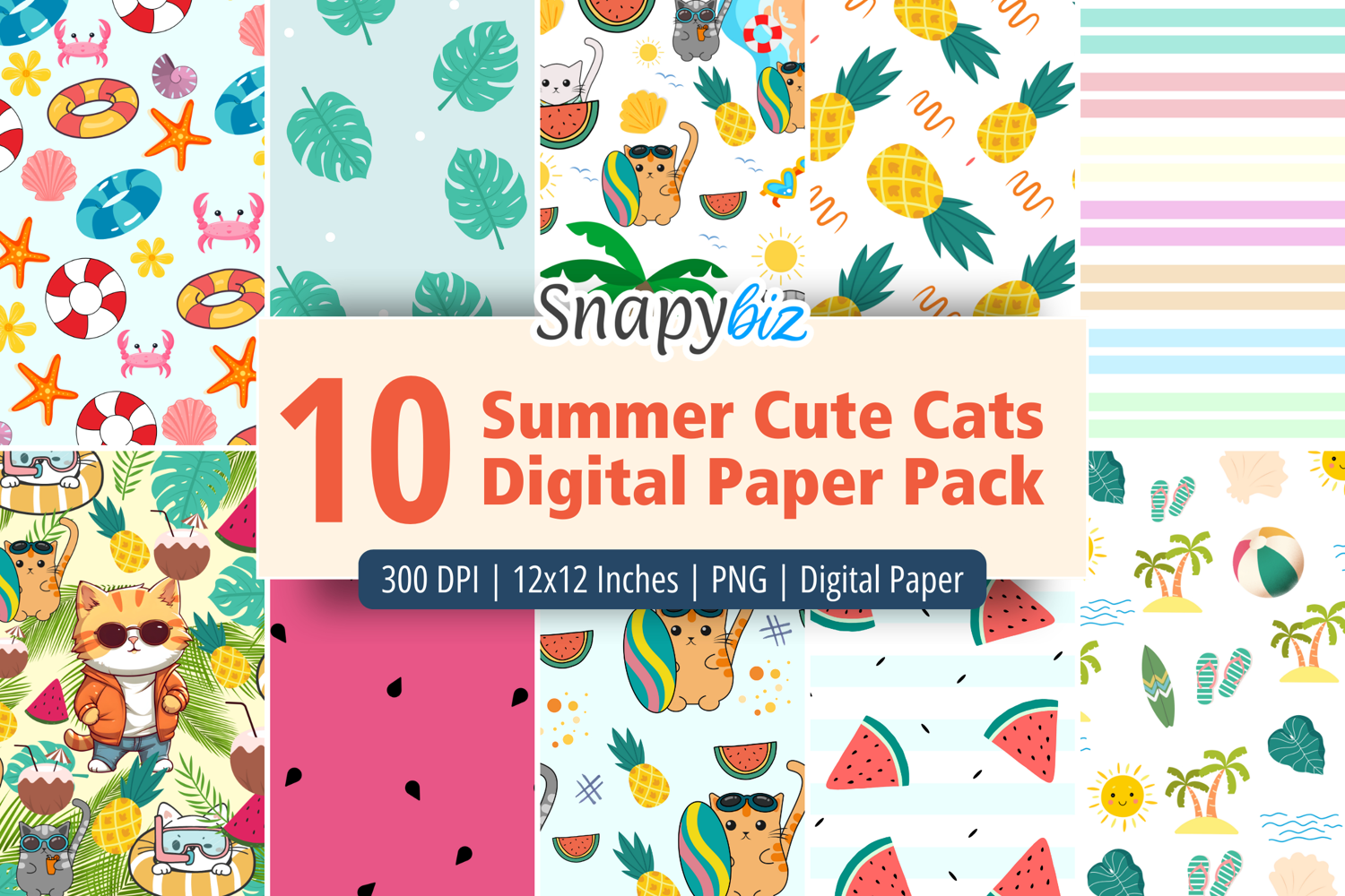 • 10 high-quality Summer Cute Cats Seamless Digital Paper