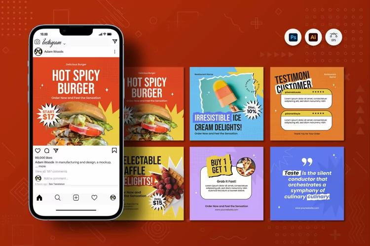 Advertising Funky Food Design Template Business Delicious Post Promotion Ad