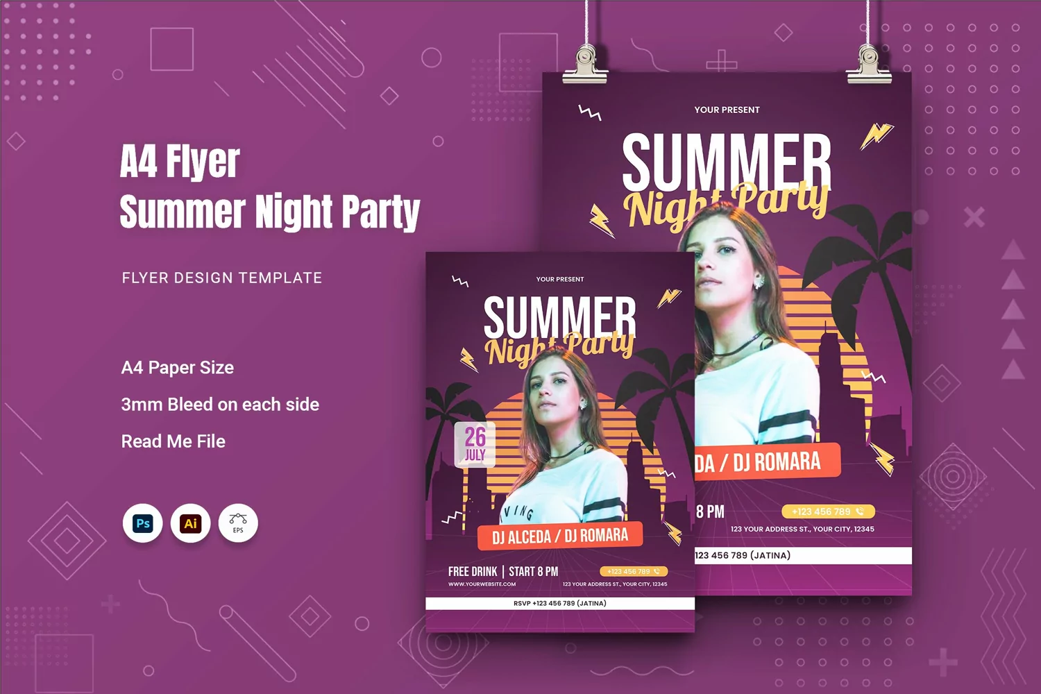 Modern Party Summer Creative Design Template Layout Flyer A4 Promotion