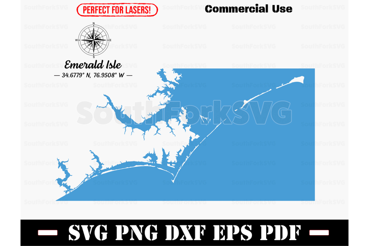 Emerald Isle NC Ocean Map Silhouette SVG PNG DXF EPS PDF
