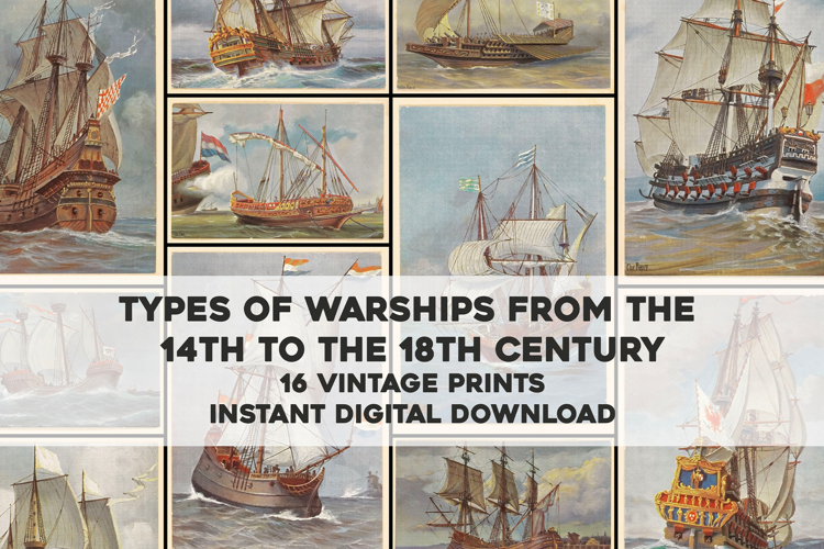 Types of Warships Antique Sea Boat Paintings Nautical Art example image 1