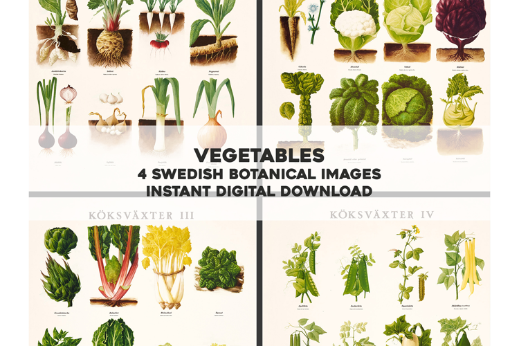 Similar Design Products to 4 Swedish Botanical Vegetable Charts Restored Images