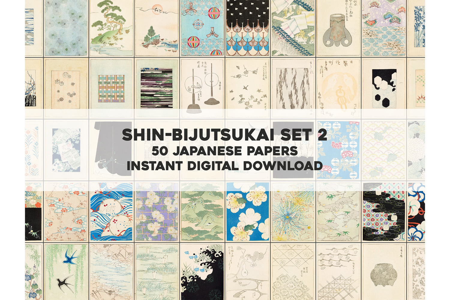 Digital Paper Pack Japanese Patterns Scrapbook Ephemera Junk Journal Kit Shin Bijutsukai Meiji Art Print Japanese Textile Kimono Pattern Art Washi Paper Print Chiyogami Style