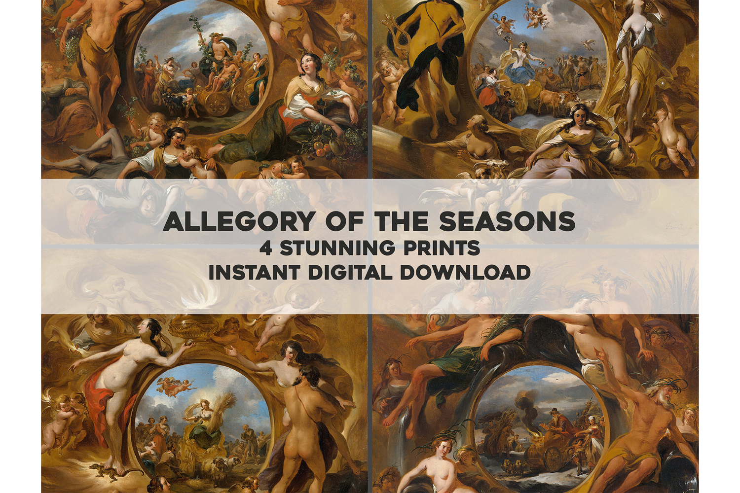 Digital Download Printable Art Vintage Wall Decor Four Seasons Art Allegory Art Set French Rococo Art Gallery Wall Set Large Artworks Square Art Baroque Renaissance Oil Paintings Rococo Fresco Digital Paper Envelope Liners Digital Postcards Winter Spring Summer Fall Seasonal