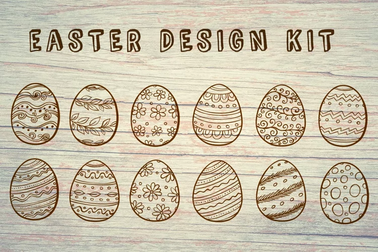 Set of vector Easter decorative eggs. This kit includes 12 different elements and 2 seamless patterns.