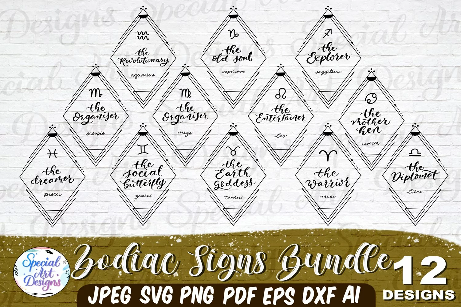 A beautiful Hand-lettered Zodiac Signs design bundle. Unique, totally handmade, High-Quality designs, perfect for making your projects memorable.