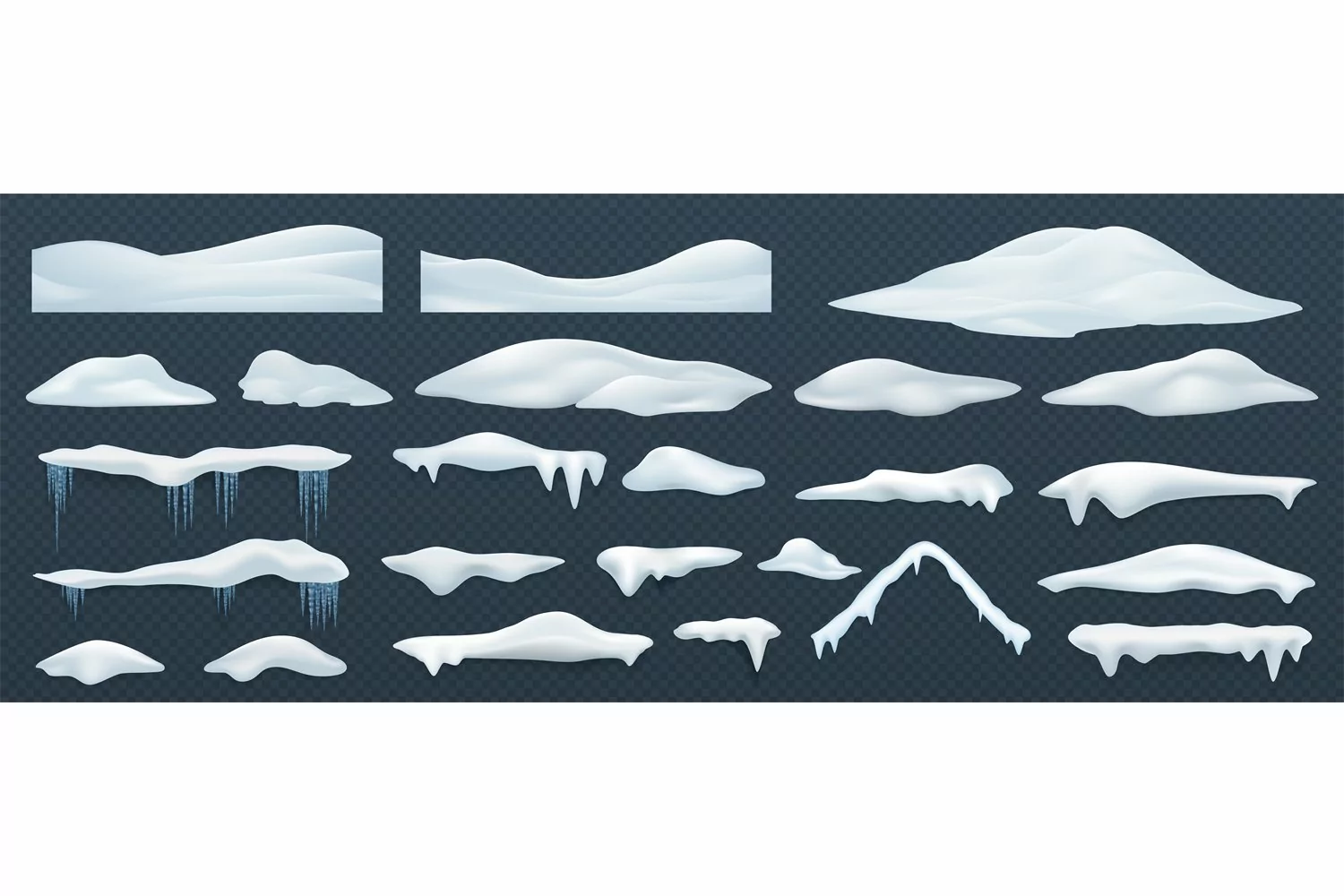 Snow piles. Realistic winter white snowcaps, snowy top effec