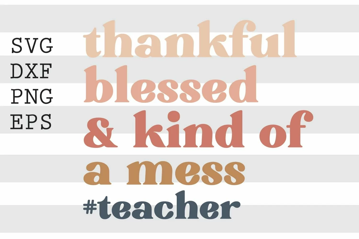 Thankful blessed & kind of a mess Teacher SVG example image 1