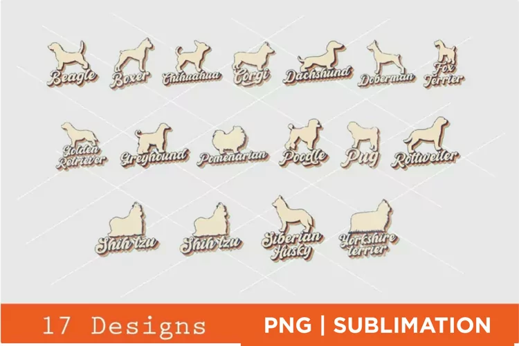 17 Retro Dog Breed Sublimation