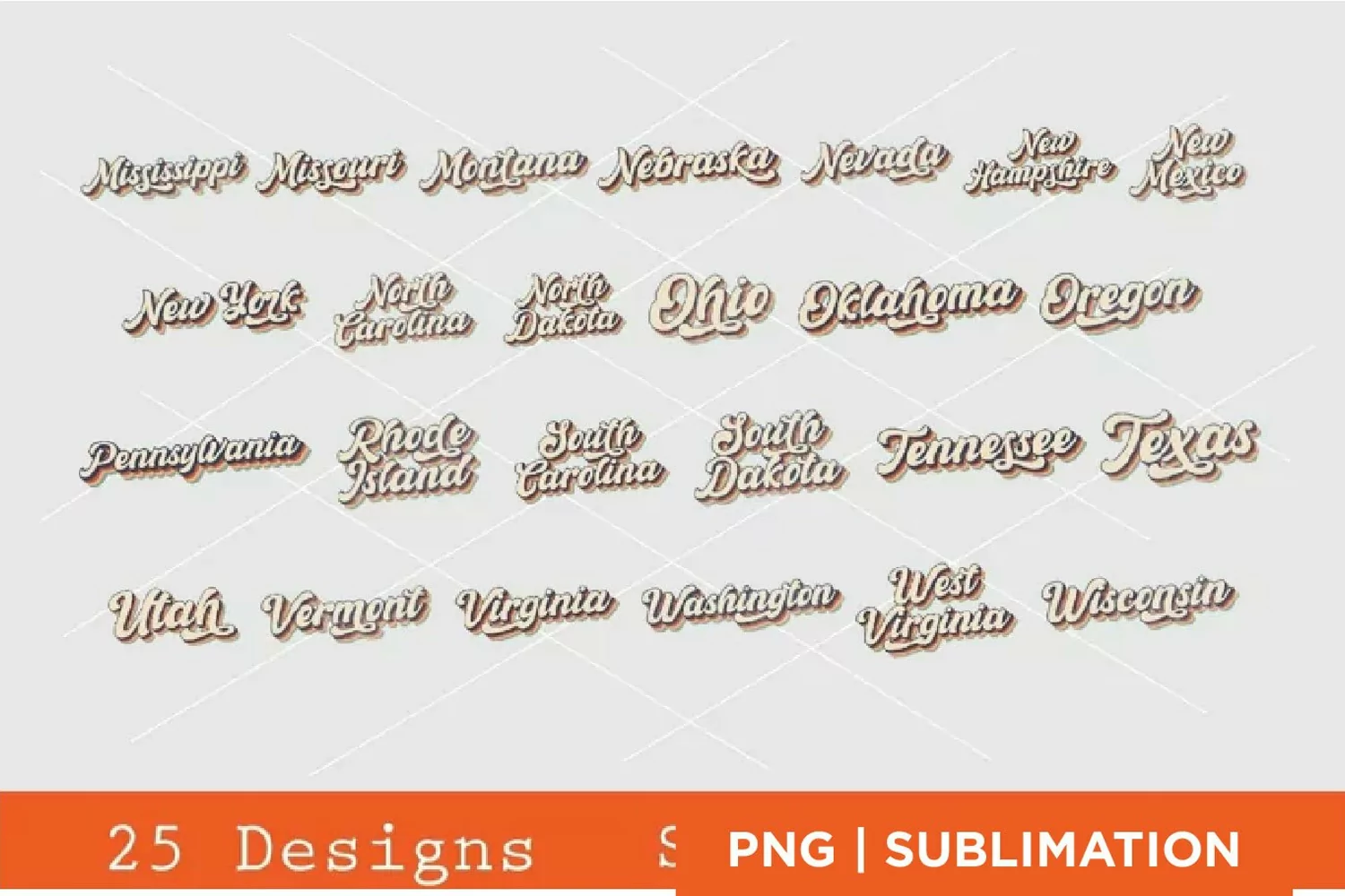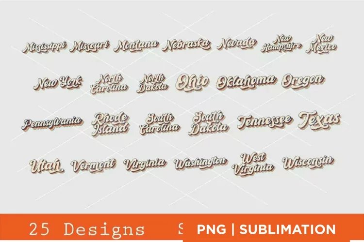 25 Retro Text State Name Sublimation | PNG only