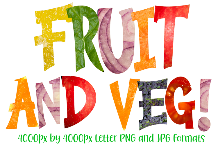 Fruit and Veg Food Font Letters Real Vegetable Alphabet ABC JPG PNG by Squeeb Creative