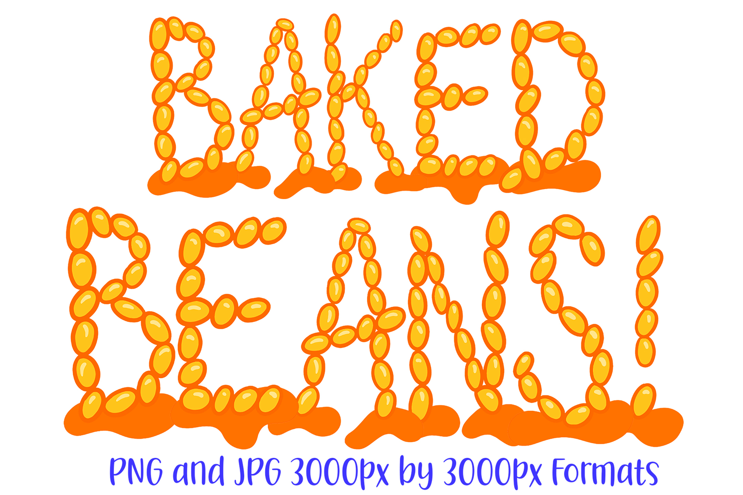 Baked Beans Font Cartoon Doodle Food Lettering ABC JPG PNG