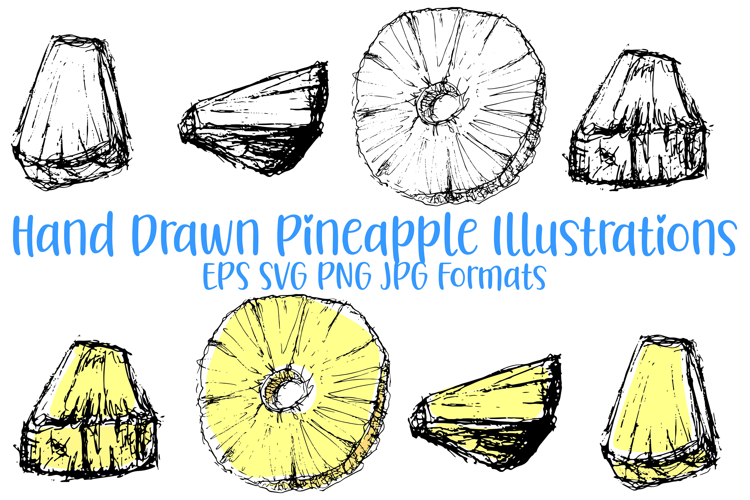The Hand Drawn Pineapple Illustrations collection is a zestful set of digital graphics that brings an organic, textured, and artistic vibe to your tropical designs. Featuring both whole slices and juicy pineapple wedges, this set is an essential resource for designers looking to create summer-themed branding, fresh menu layouts, or artisan product packaging.