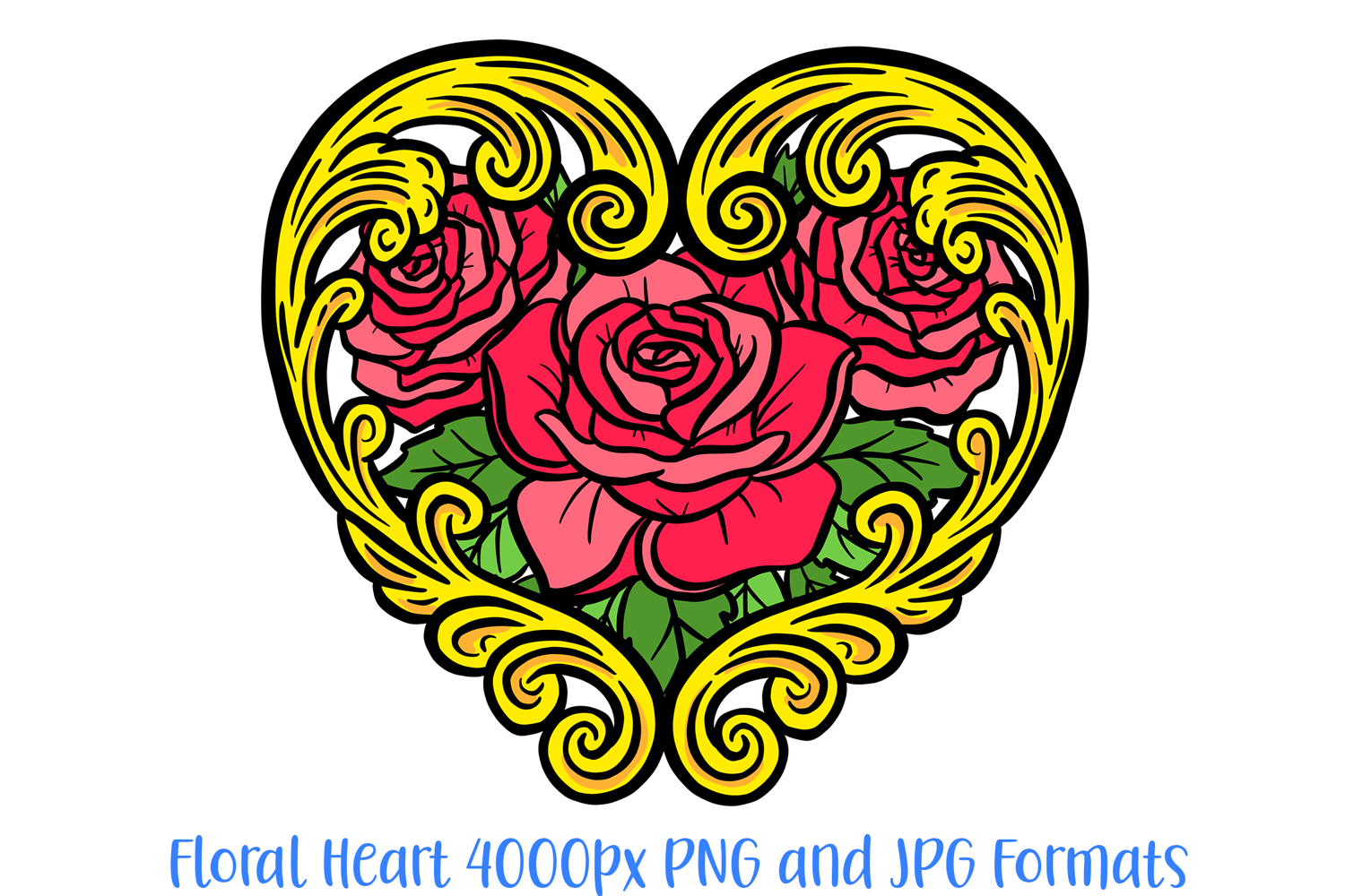 The Art Nouveau Rose Heart Wreath is a luxurious, hand-drawn digital illustration that masterfully blends classical ornamental flourishes with romantic botanical beauty. Featuring three lush, vibrant red roses nestled within an intricate heart-shaped frame of golden yellow scrolls and filigree, this design is a premier asset for designers working on high-end wedding stationery, luxury branding, Valentine’s Day graphics, and professional apparel.