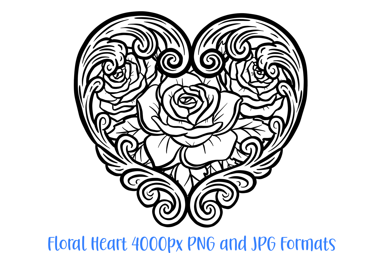 The Art Nouveau Rose Heart Wreath is a luxurious, hand-drawn digital illustration that masterfully blends classical ornamental flourishes with romantic botanical beauty. Featuring three lush roses nestled within an intricate heart-shaped frame of scrolls and filigree, this design is a premier asset for designers working on high-end wedding stationery, luxury branding, Valentine’s Day graphics, and professional apparel.