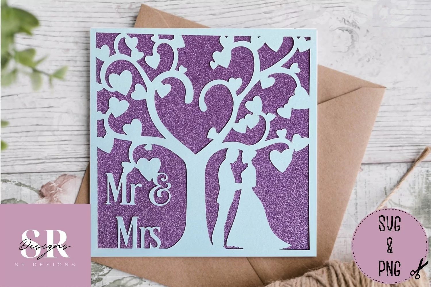 Mr & Mrs card| Paper cutting | wedding card SVG example image 1