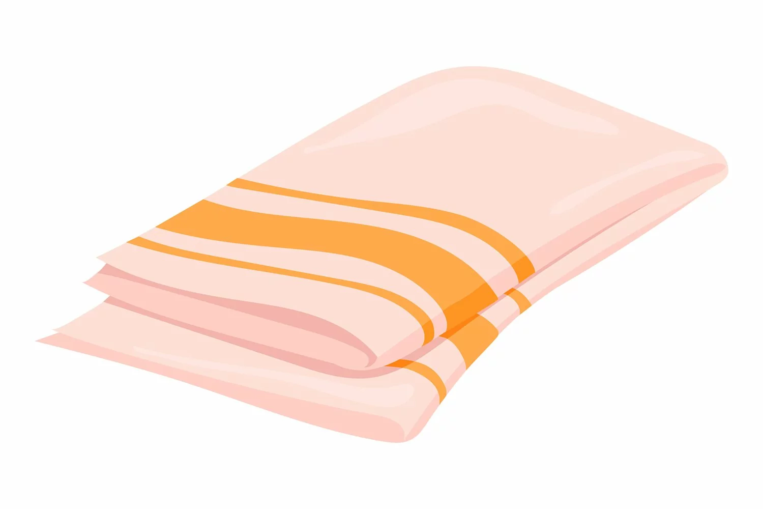 Kitchen hand towel. Folded fabric. Cartoon cloth isolated on white background