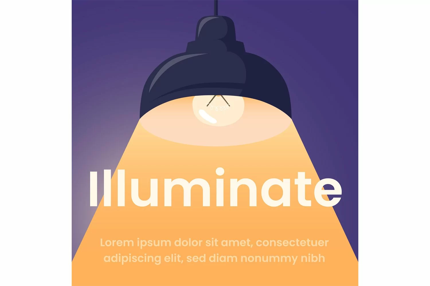 Spotlight banner concept. Lamp light with glowing electric light bulb and bright creative idea message poster, background with place, neat vector illustration. Spotlight and bright banner