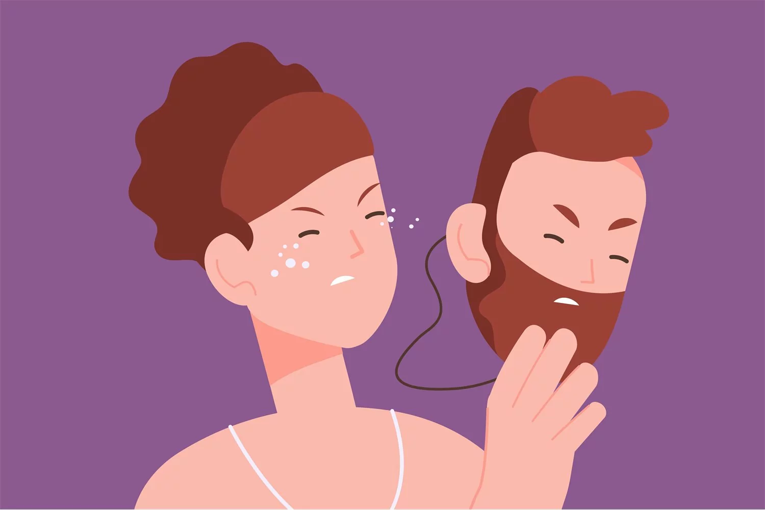 Transgender mask. Trans gender identity, modern transsexual example image 1