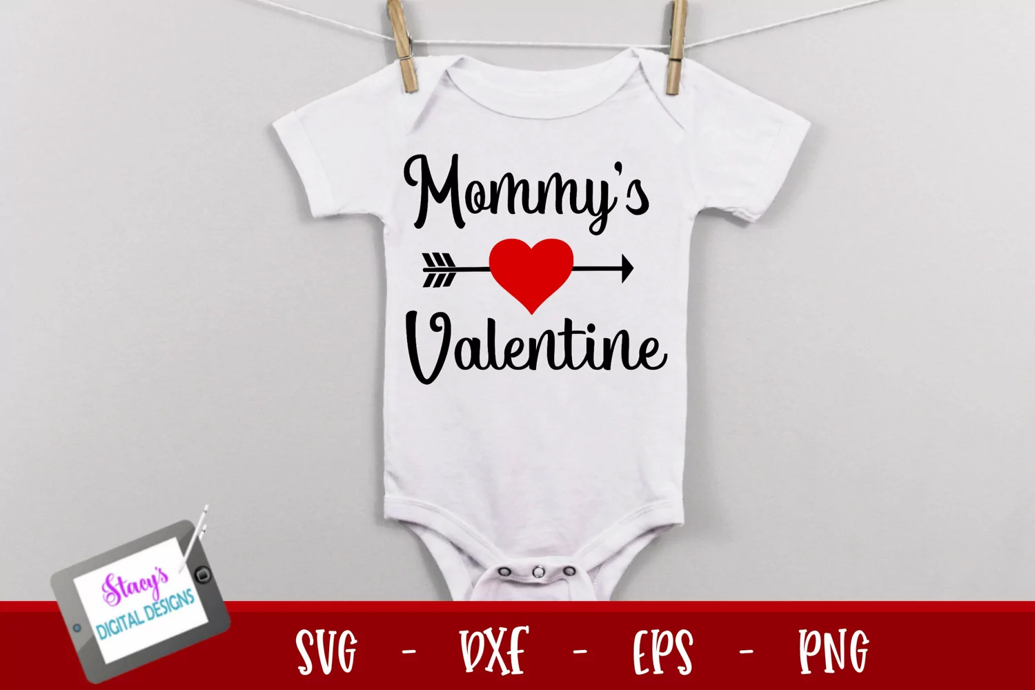 mommys valentine svg design shown on a baby bodysuit