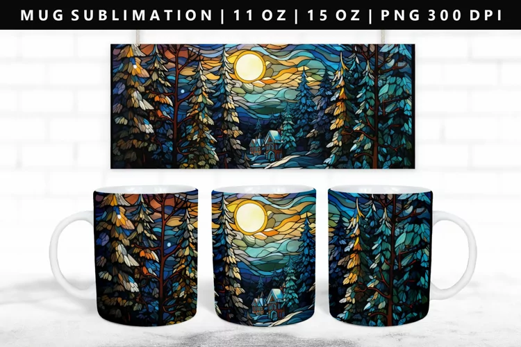 Mug Sublimation Mug Design Png 11oz Mug Wrap Stained Glass Mug Wrap 15 Oz Mug Wrap Design 15oz Mug Wrap Png Stained Glass Mug Sublimation Christmas Night Mug Wrap Design Winter Landscape Mug Sublimation Winter Night Mug Design Png