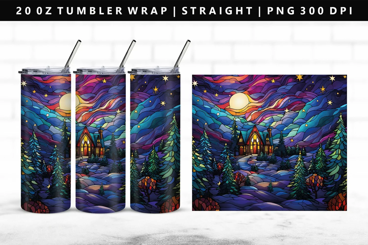 Tumbler Sublimation Skinny Tumbler Sublimation Straight Tumbler Wrap Tumbler Design Png 20oz Skinny Tumbler Wrap Stained Glass Tumbler Wrap Winter Landscape Tumbler Sublimation Stained Glass Tumbler Sublimation Christmas Night Tumbler Design Stained Glass 20oz Tumbler Sublimation