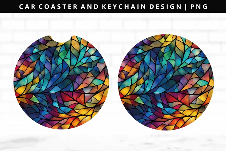 Stained Glass Keychain And Car Coaster Sublimation Design
