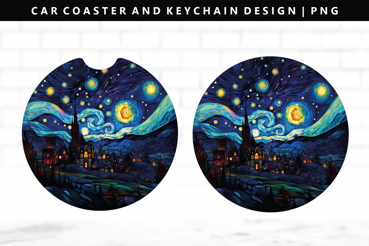 Starry Night Keychain And Car Coaster Sublimation Design example image 1