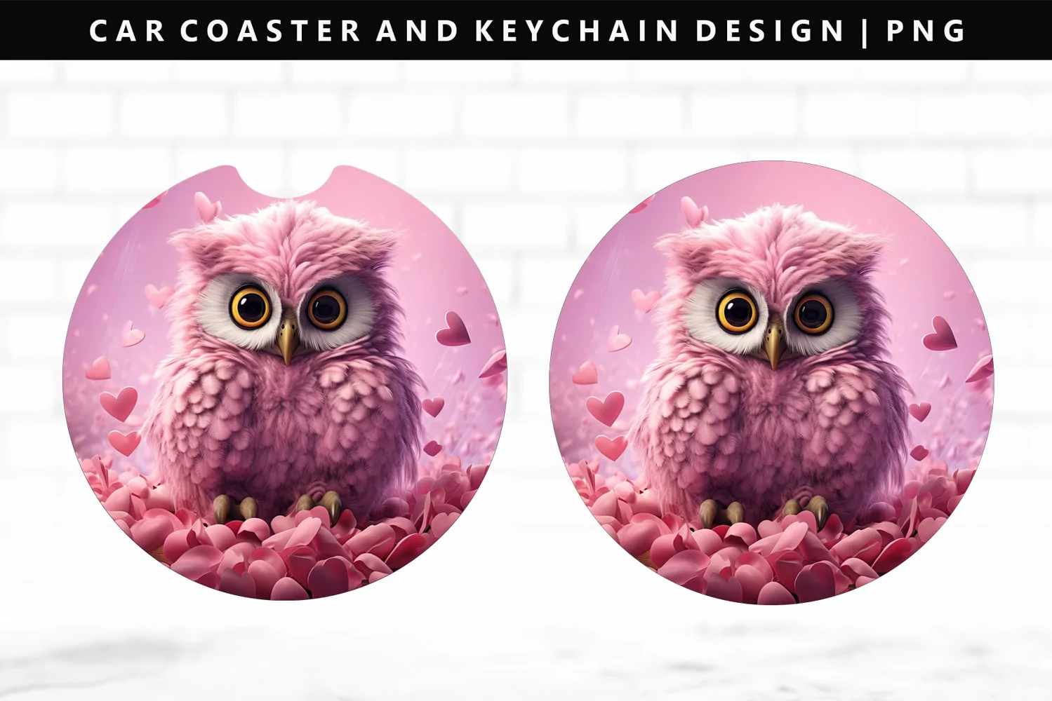 Owl Keychain And Car Coaster Sublimation Design example image 1