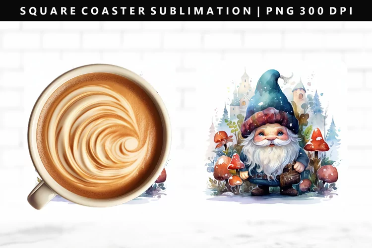 Gnome Square Coaster Design | Square Coaster PNG example image 1