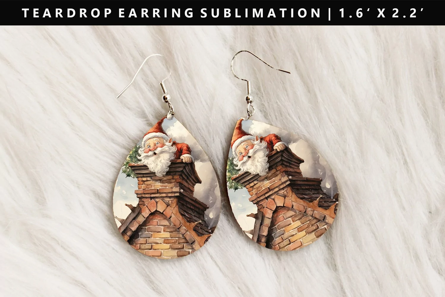 Funny Santa Teardrop Earring Sublimation PNG Design