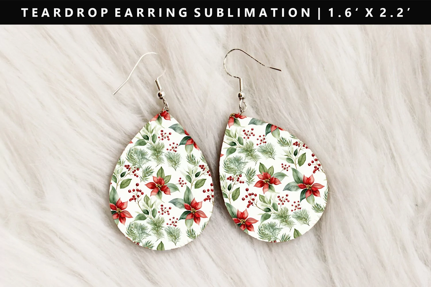 Christmas Teardrop Earring Sublimation PNG Design example image 1